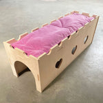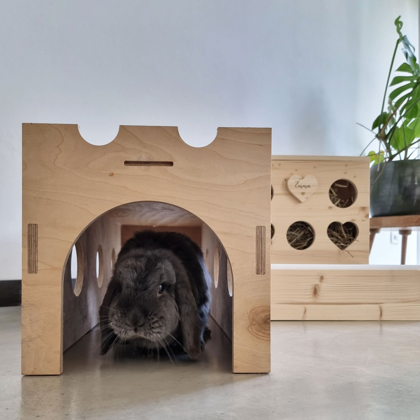 Ecco a te, per lui o lei, il “Bunny Tunnel", realizzato in legno certificato e senza trattamenti chimici, che abbiamo testato ed approvato qui alla tana. È un vero e proprio oggetto d’arredo free standing, un accessorio necessario nella casa della coppia ideale umano e coniglio.