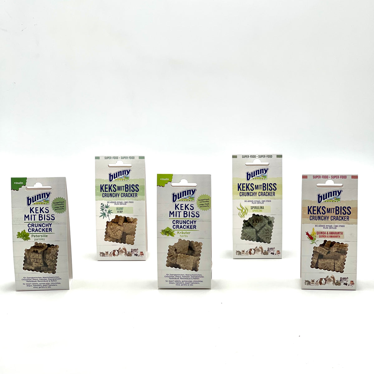 I Bunny Crackers sono disponibili in bustine da 50gr, in dieci gusti differenti…il tuo coniglietto deve provarli tutti!!!