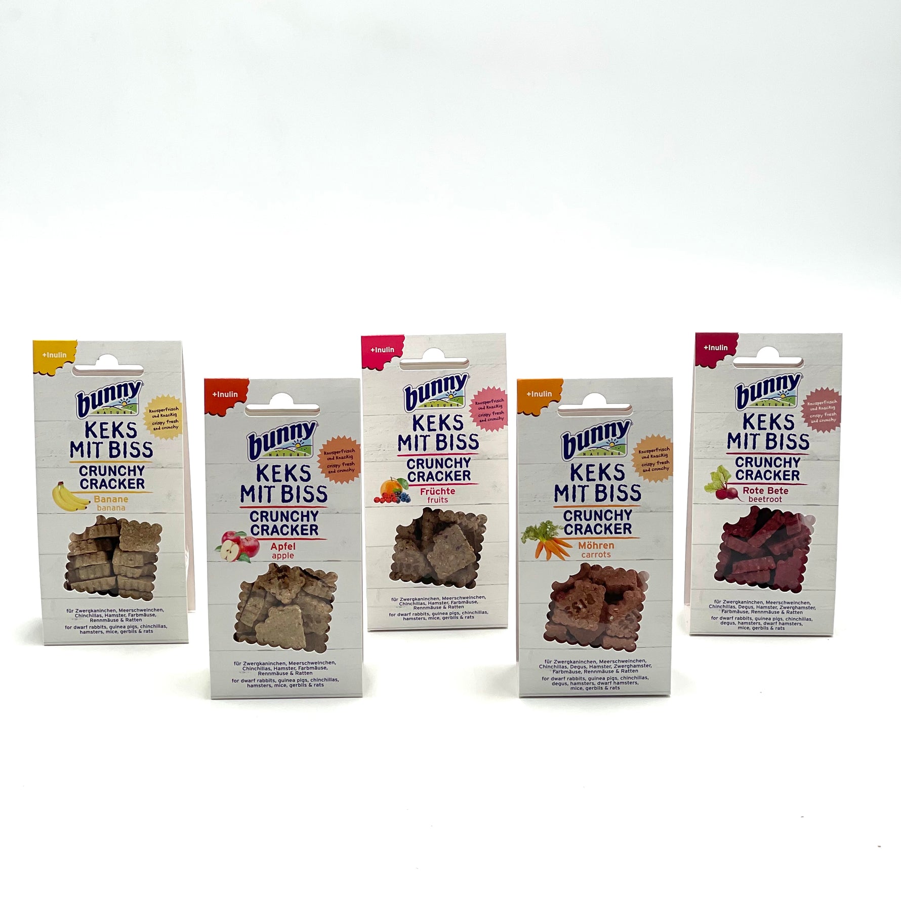Uno snack somministrato al momento giusto rappresenta una piacevole alternativa alla normale dieta: i Bunny Crackers sono una vera prelibatezza dal gusto eccezionale, selezionati da bunnylovers innamorati ed approvati dalla colonia di affamati cronici che vive qui alla tana.