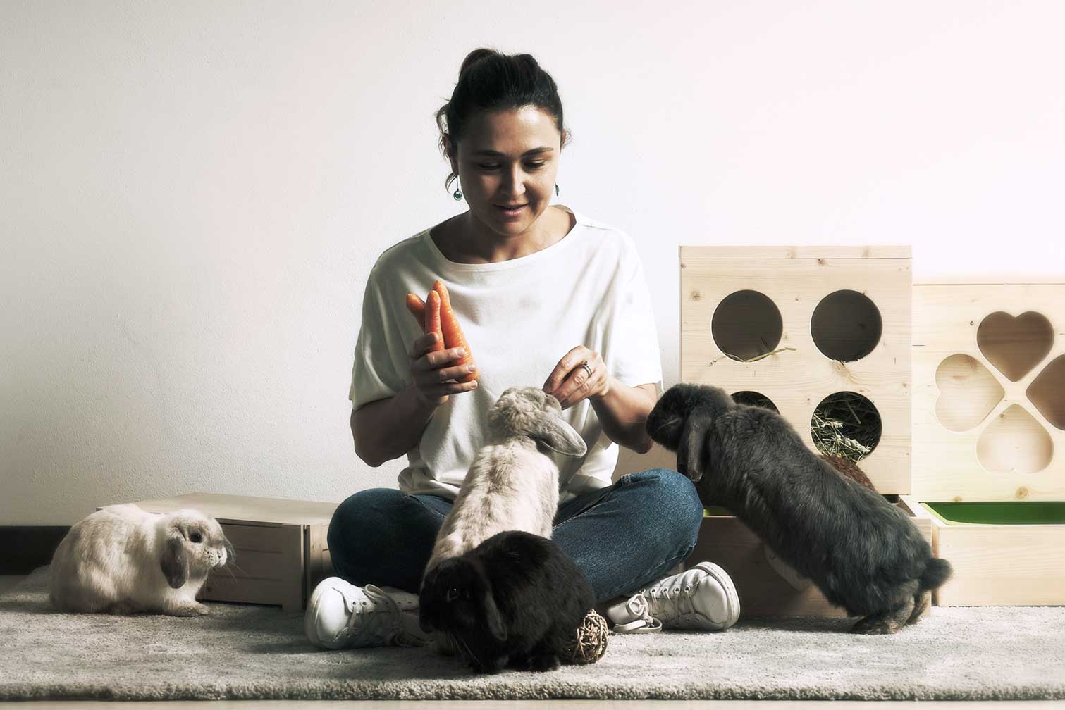 • Arreda lo spazio del coniglio con complementi pensati per le sue abitudini di vita. Crea stimoli e nascondigli, il pelosetto si sentirà davvero a casa