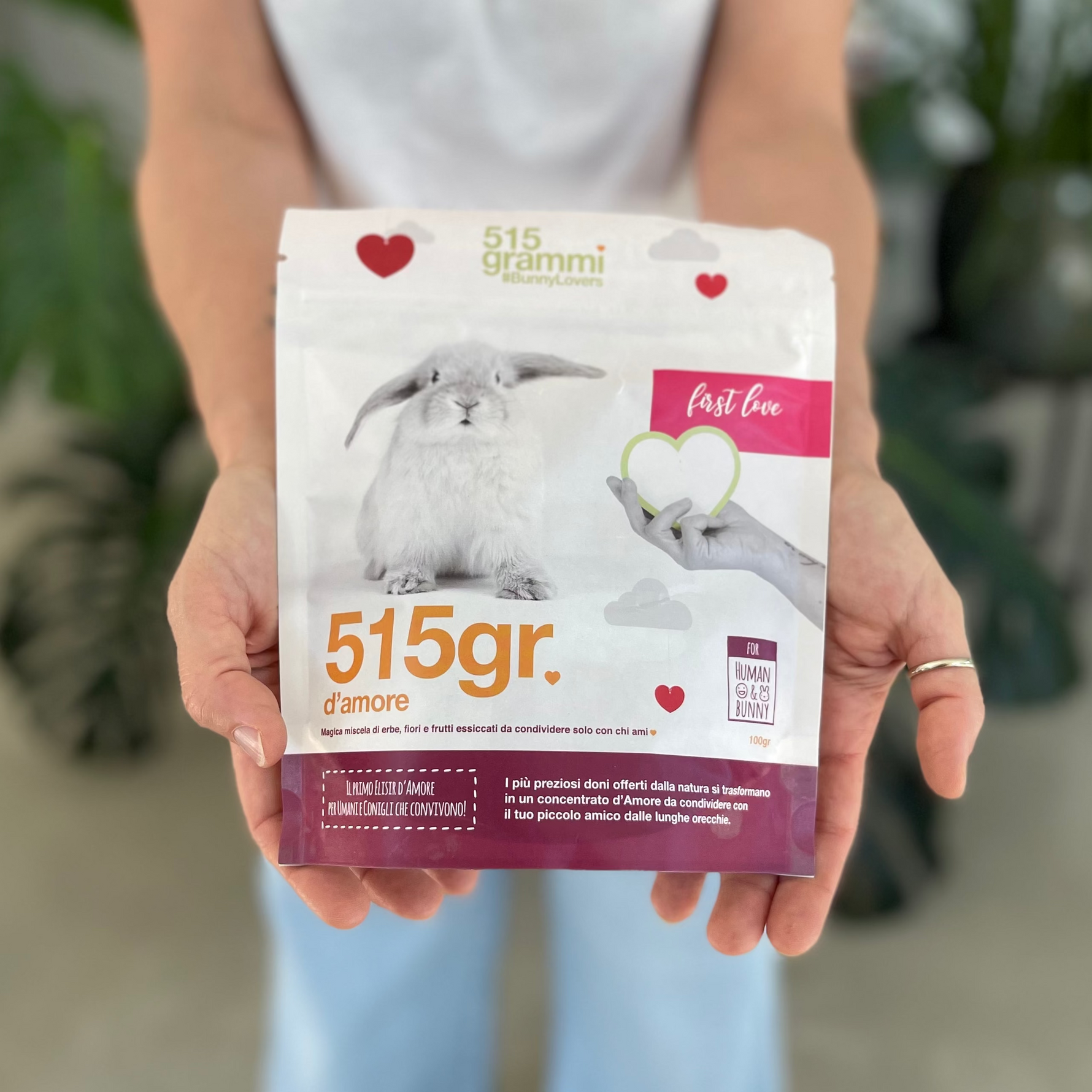 “515grammi d’Amore” è la prima ed unica selezione di erbe, fiori, frutta e radici pensata appositamente per essere condivisa da conigli e umani che convivono: ora anche tu puoi finalmente assaporare i gusti naturali delle erbe di cui il tuo coniglietto è ghiotto perché insieme è tutto più buono ❤
