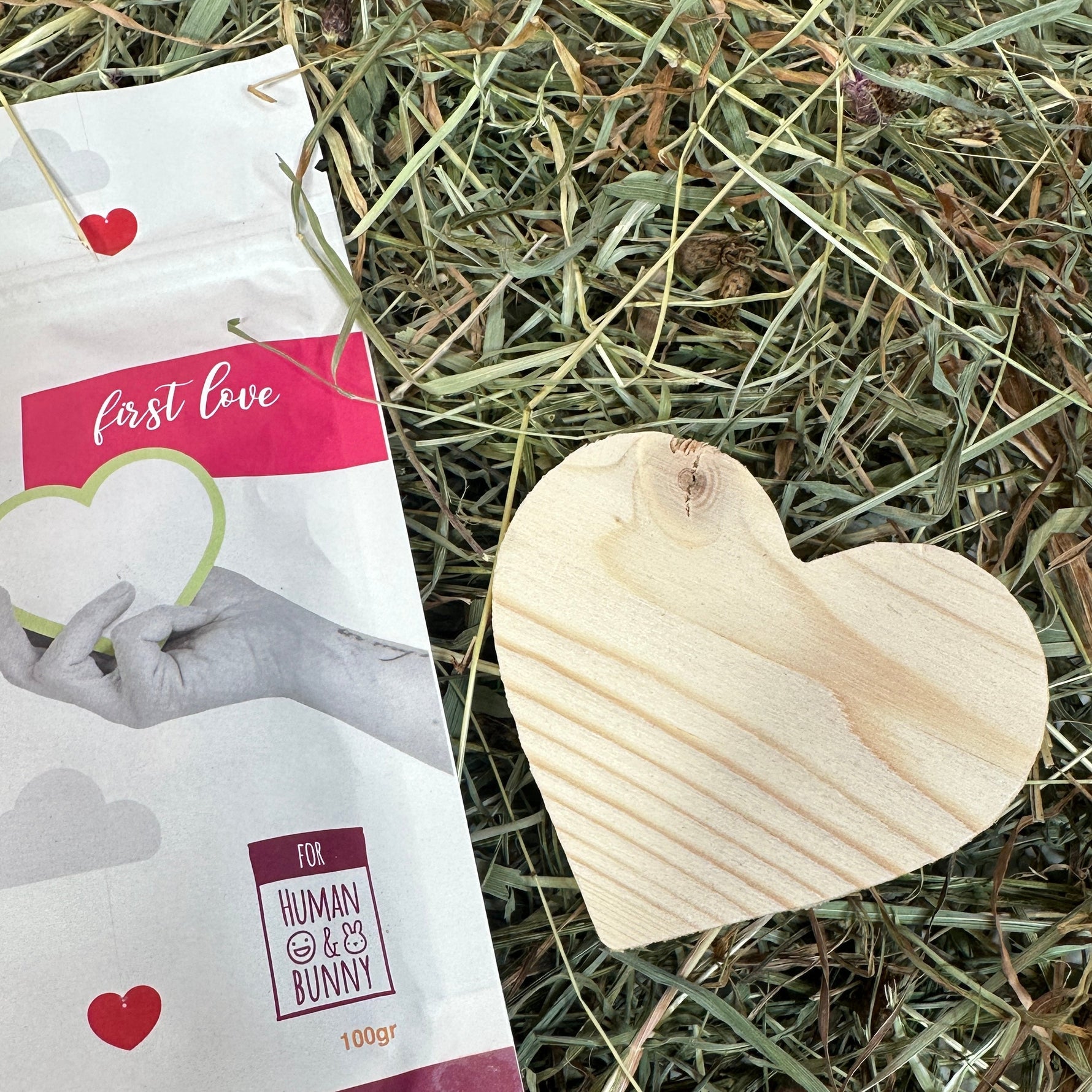 E visto che a febbraio siamo tutti più romantici, se ordini la confezione da 100g di First Love Edition, ricevi IN OMAGGIO un Cuoricino di legno da sgranocchiare.